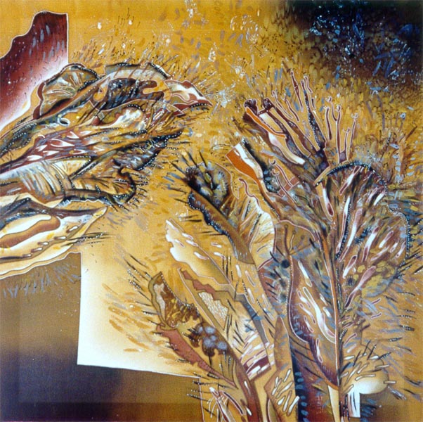 | | | Янтарный день. Шёлк, хол. батик, 90х90, 1998. | |
