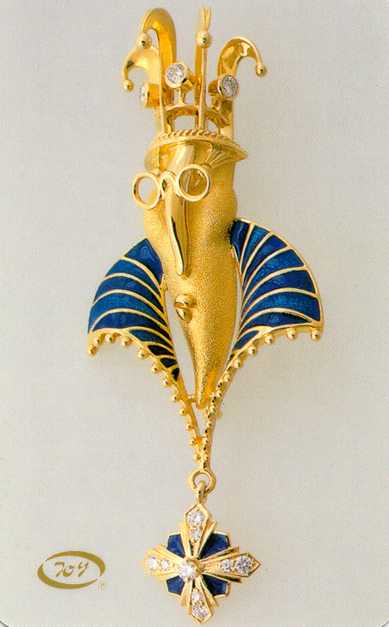 | | | Brooch "Buffoon". 1995. Gold, enamel, brilliants. | |