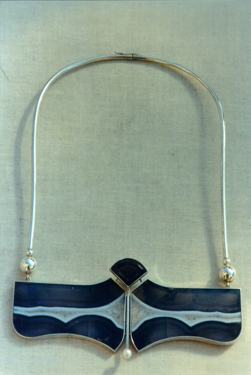 | | | Necklace from suit "Evening". 1989. Silver, tiger eye, smoke-like crystal. | |