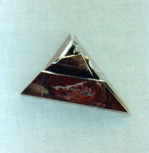 | | | Brooch of suit "Landscape". 1991. Silver, jasper, topazes. | |