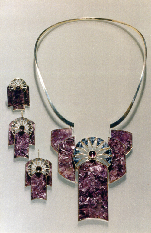 | | | Suit "Ave Maria". 1994. Silver, charoit, amethyst, perunit. | |