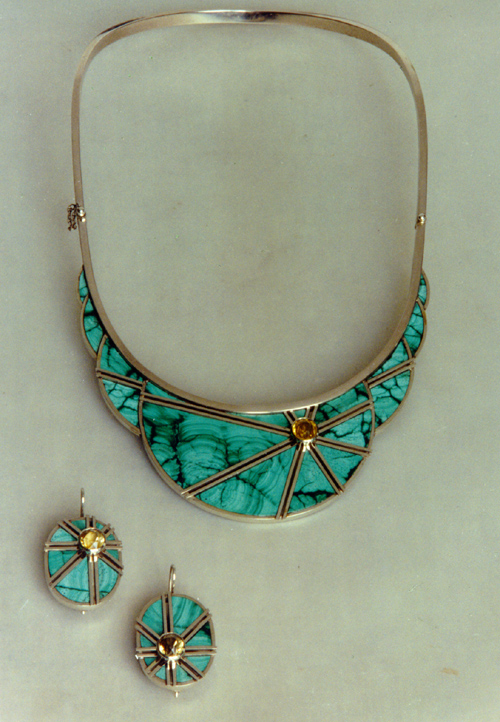 | | | Suit "Good mood". 1987. German silver, malachite, citrines. | |