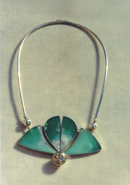 | | | Necklace from suit "Day". 1988. Silver, chrizopraz, citrine. | |