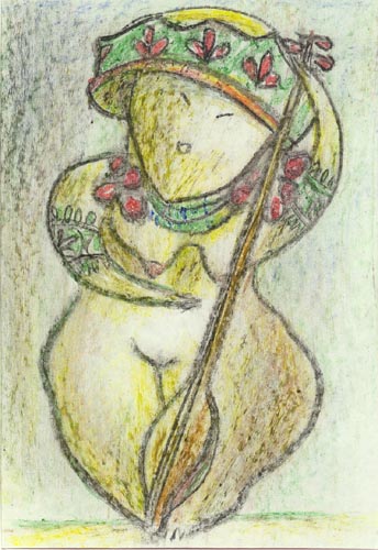 | | | From "Steppe" Series. Oriental Beauties. Paper, wax pencil. 30x19. 1996. Author's property | |
