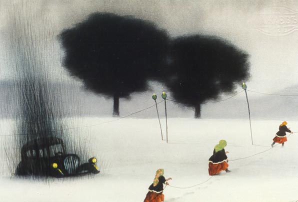 | | | "Три девушки в снежном поле". 1996. 51*75. Смешан. техн. Собственность семьи Сажаевых. | |