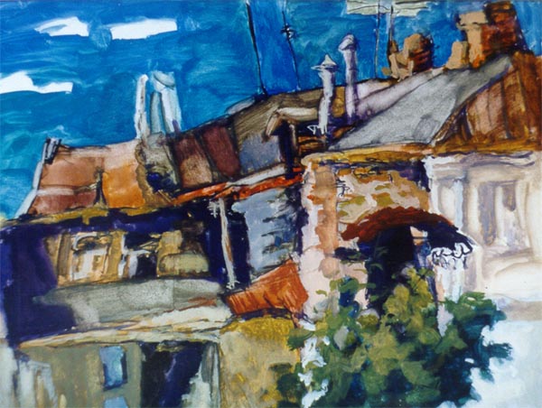 | | | Пейзаж с жёлтым небом.1993. Гуашь. 42*56. | |