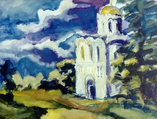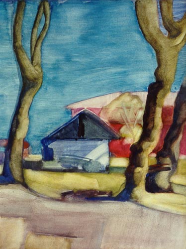 | | | Пейзаж с голубым небом. Б., акв., гуашь. 45*56. | |