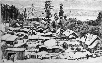 | | | "Evening on Chusovaya river". 1990. Etching. | |