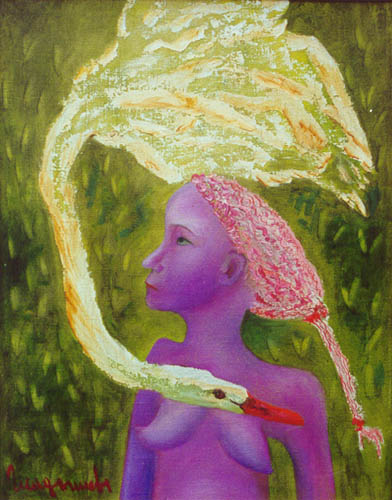 работает художница - "наивный сюрреализм".